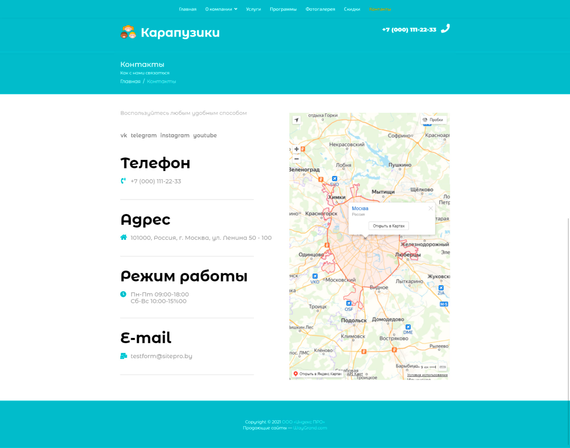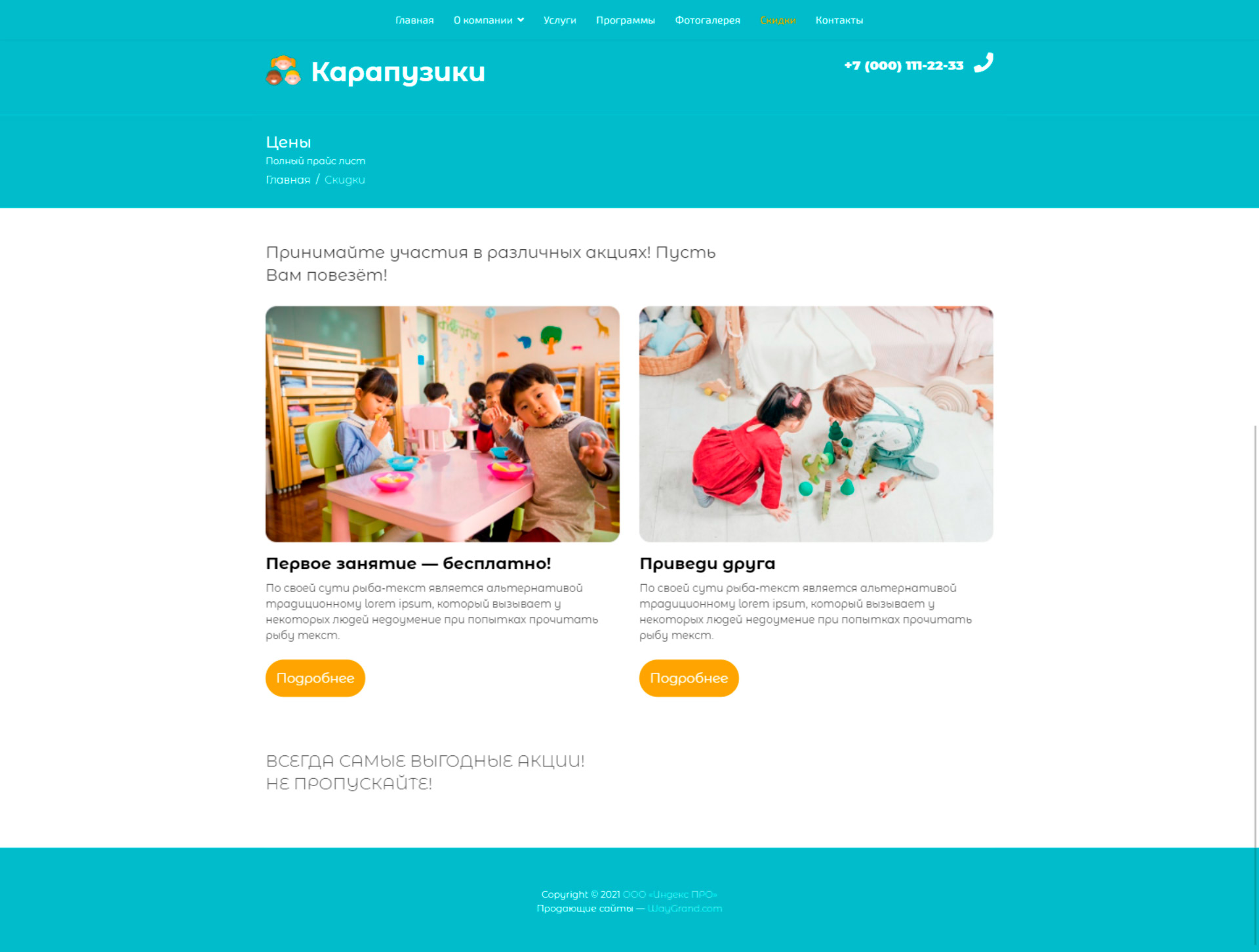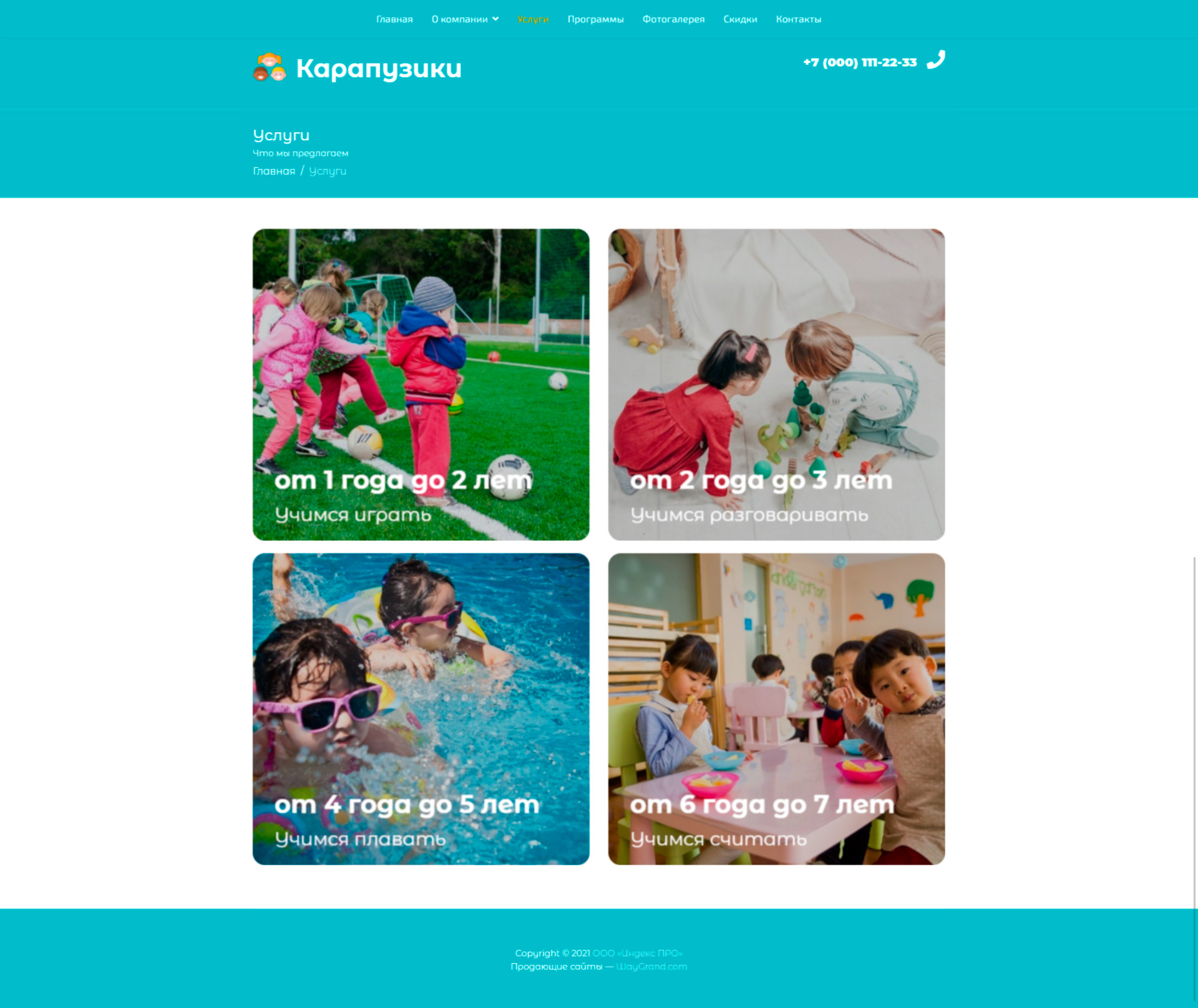 Закажите готовый продающий сайт визитка #0419301 в Туле за 5-7 дня «под ключ»: свёрстан, отрисован и готов к рекламе. Тематика шаблона «Частный детский центр».