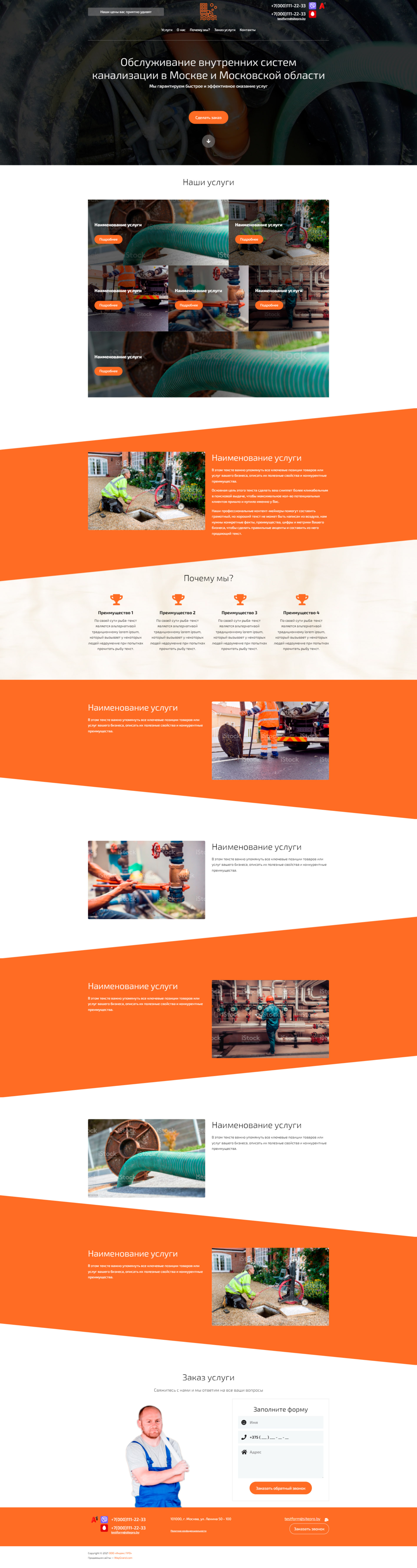 Закажите готовый продающий сайт лендинг #2137202 в Туле за 1-3 дня «под ключ»: свёрстан, отрисован и готов к рекламе. Тематика шаблона «Обслуживание внутренних систем канализации».