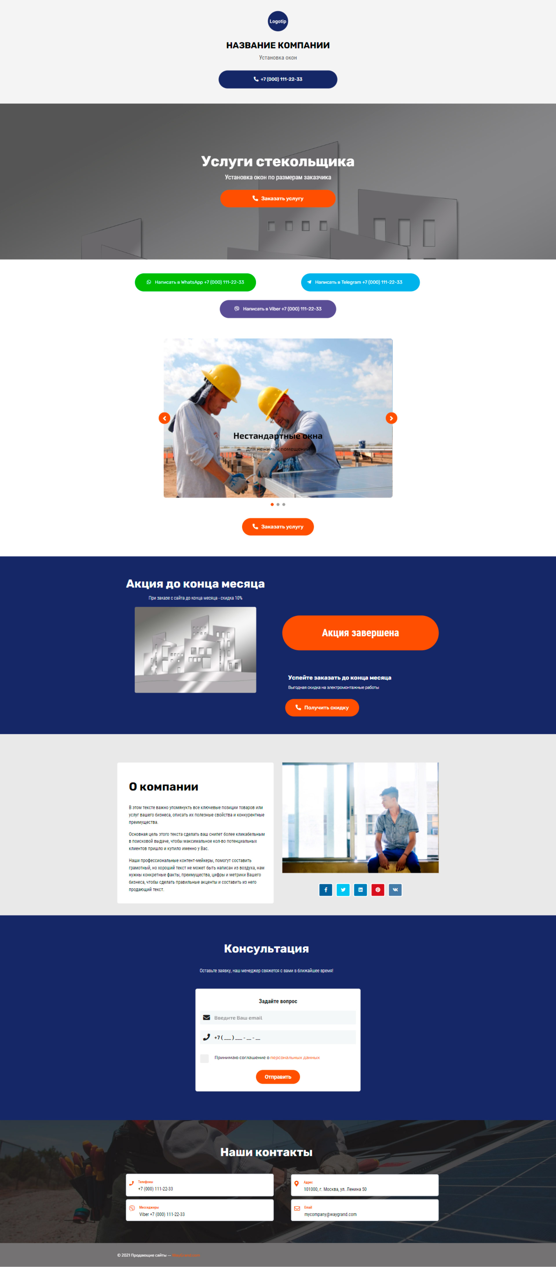 Закажите готовый продающий сайт визитка #2138101 в Туле за 5-7 дня «под ключ»: свёрстан, отрисован и готов к рекламе. Тематика шаблона «Установка окон».