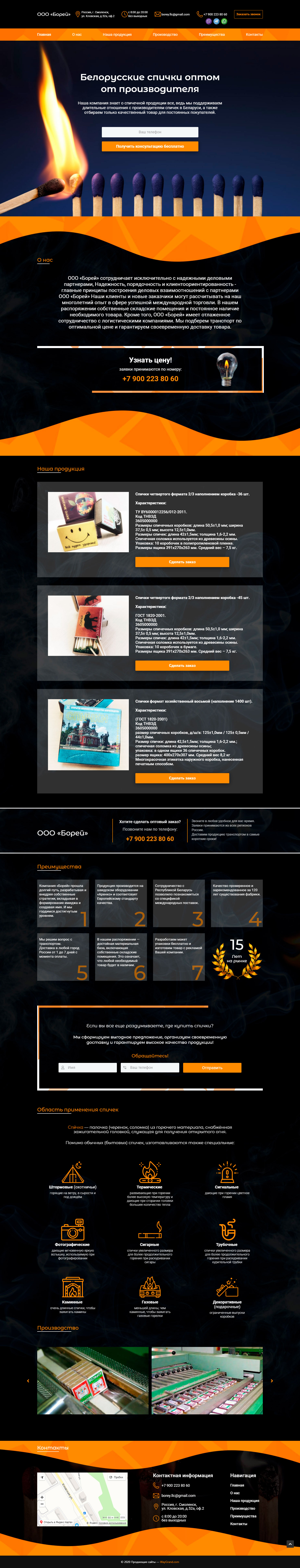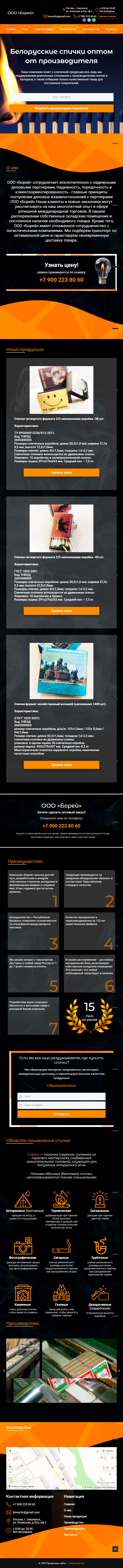 Закажите готовый продающий сайт лендинг #115 в Туле за 1-3 дня «под ключ»: свёрстан, отрисован и готов к рекламе. Тематика шаблона «Белорусские спички оптом от производителя».